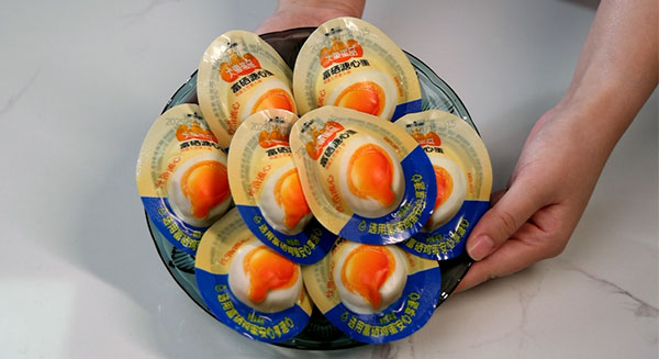 2. 溏心型:外层凝固,中心柔软绵密,有弹性但不硬,适合当早餐、便当。